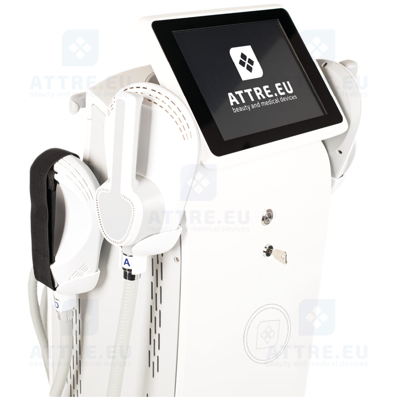 Każda głowica może mieć ustawione inne parametry. Urządzenie wyposażone jest w 10 calowy, kolorowy monitor dotykowy. Efektywne chłodzenie głowic pozwala pracować w systemie ciągłym bez konieczności robienia przerw między zabiegami. Zastosowana w urządzeniu technologia nie wymaga używania dodatkowych preparatów (żelów, olejków, ampułek). Efektem zabiegu jest poprawa struktury i wytrzymałości mięśni, która zachodzi jeszcze przez dwa tygodnie od wykonania zabiegu.